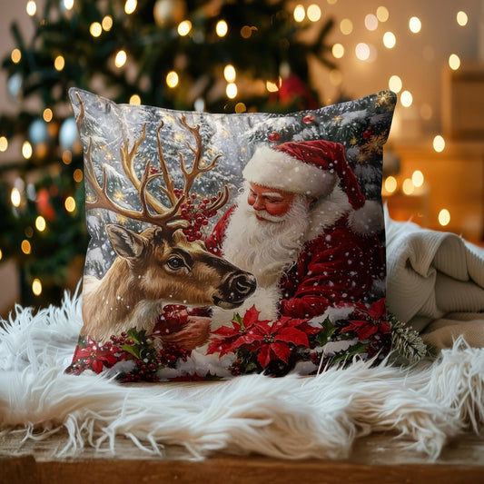 Shineful 2D Print Cushion Cover, Pillowcase, Pillows Covers - Santa Claus and Reindeer Sharing a Festive Moment