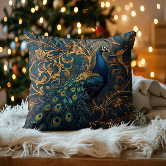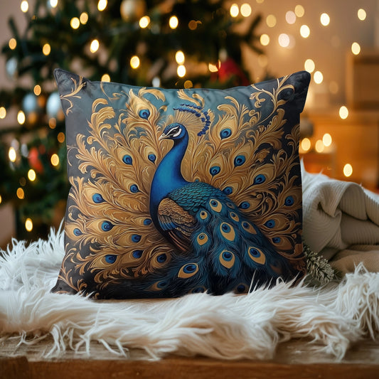 Shineful 2D Print Cushion Cover, Pillowcase, Pillows Covers - Majestic Peacock Amidst Ornate Flourishes