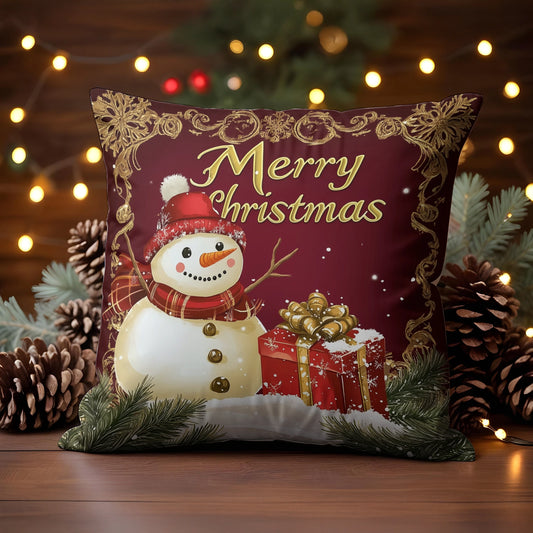 Shineful 2D Print Cushion Cover, Pillowcase, Pillows Covers - Golden Snowman Christmas Card - Warm Festive Greetings