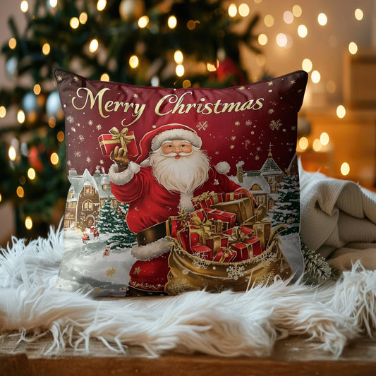Shineful 2D Print Cushion Cover, Pillowcase, Pillows Covers - Merry Christmas from Santa’s Workshop of Joy