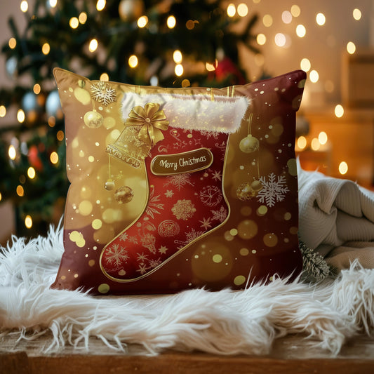 Shineful 2D Print Cushion Cover, Pillowcase, Pillows Covers - Luxurious Christmas Stocking with Glittering Gold Accents