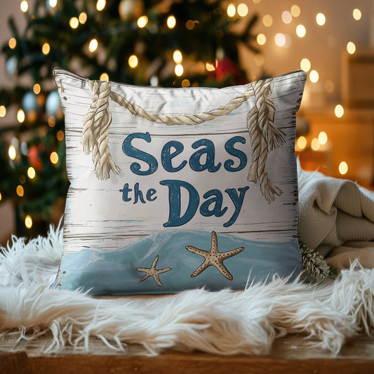 Shineful 2D Print Cushion Cover, Pillowcase, Pillows Covers - Coastal Bliss - Rope & Starfish Vintage Sign
