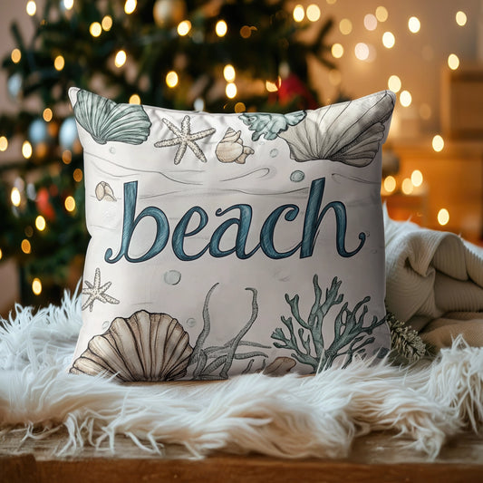 Shineful 2D Print Cushion Cover, Pillowcase, Pillows Covers - Ocean Serenity - Beach Art with Seashells and Starfish