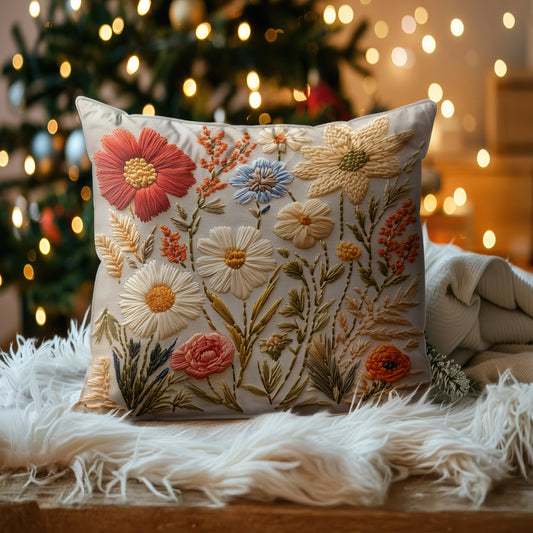 Shineful 2D Print Cushion Cover, Pillowcase, Pillows Covers - Embroidery flowers and plants