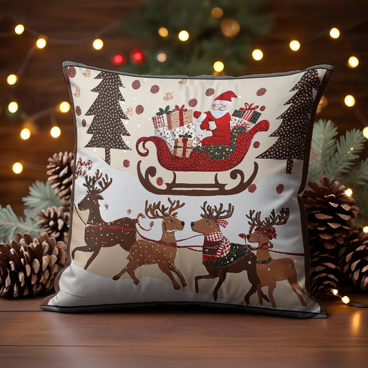 Shineful 2D Print Cushion Cover, Pillowcase, Pillows Covers - Cozy Santa Claus With Reindeer Pulling His Sleigh Full Of Gifts