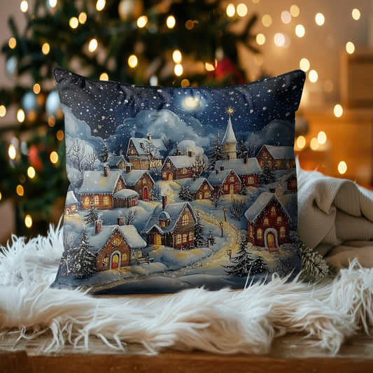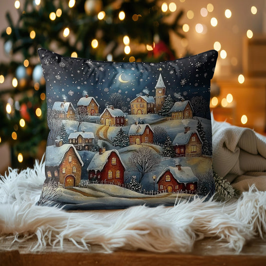 Shineful 2D Print Cushion Cover, Pillowcase Snowy Village Christmas