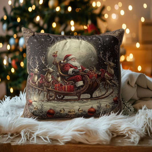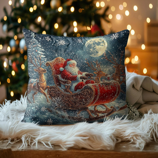 Shineful 2D Print Cushion Cover, Pillowcase Santa’s Moonlit Sleigh Ride