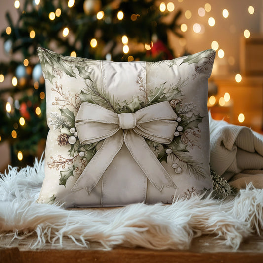 Shineful 2D Print Cushion Cover, Pillowcase, Pillows Covers - A Beautiful White Bow Christmas