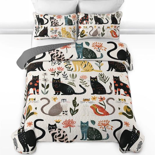 Shineful All Season Quilt 3-Piece Set Botanical Cat Bliss