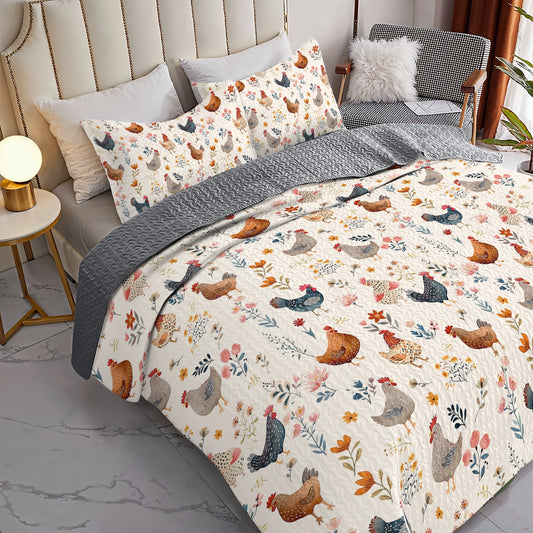 Shineful All Season Quilt 3-Piece Set Chicken Flower
