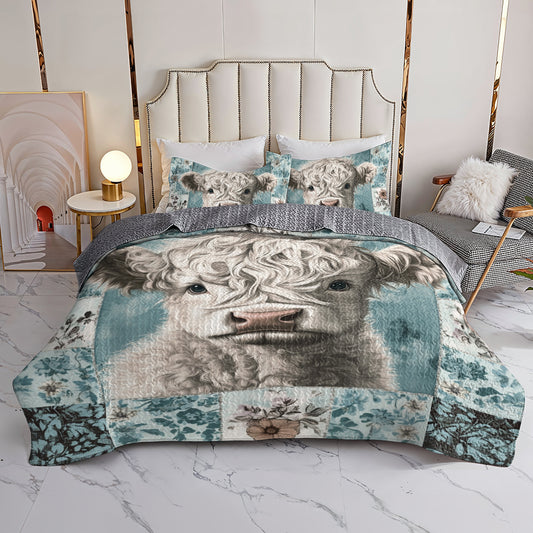 Shineful All Season Quilt 3-Piece Set - Rustic Highland Cow Farm Quilt