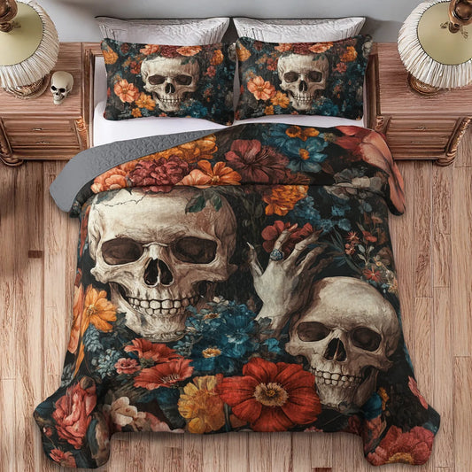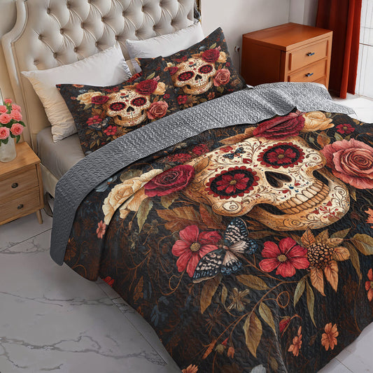Shineful All Season Quilt 3-Piece Set - Dark Bloom Sugar Skull