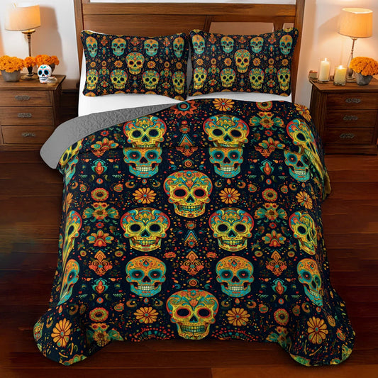 Shineful All Season Quilt 3-Piece Set - Mystic Sugar Skull