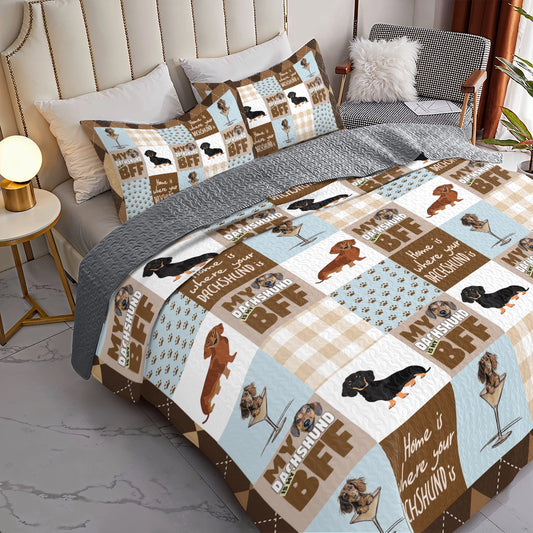 Shineful All Season Quilt 3-Piece Set Dachshund Floral Portrait