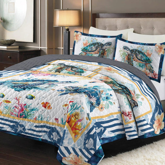 Shineful All Season Quilt 3-Piece Set Serene Sea Turtle