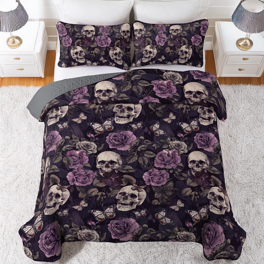 Shineful All Season Quilt 3-Piece Set Midnight Skulls and Roses