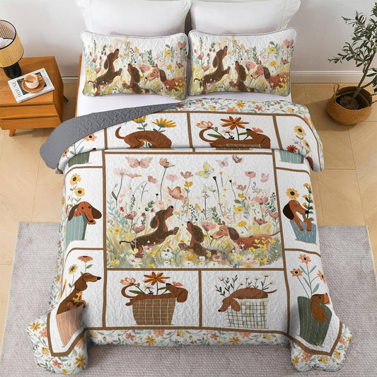 Shineful All Season Quilt 3-Piece Set Flowers Dachshunds