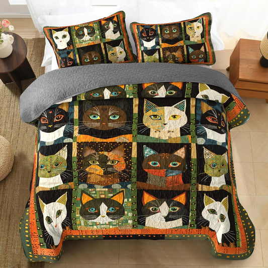 Shineful All Season Quilt 3-Piece Set Cat Faces Fantasy