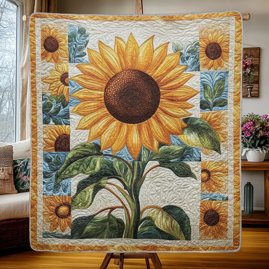 Shineful Flat Print Faux Quilt Blanket - Sunlit Sunflower
