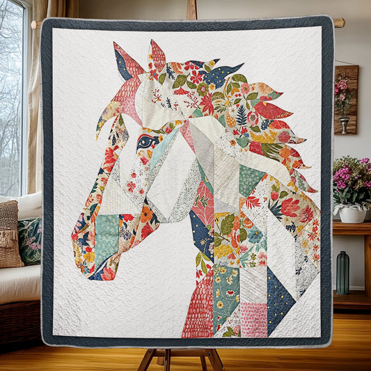 Shineful Flat Print Faux Quilt Blanket - Charming Floral Horse