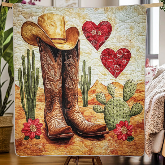 Shineful Flat Print Faux Quilt Blanket - Western Charm with Cowboy Boots and Cactus