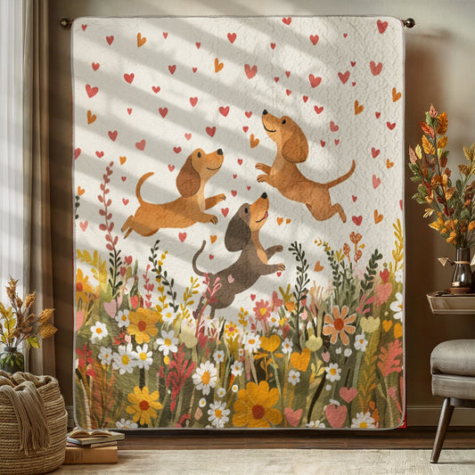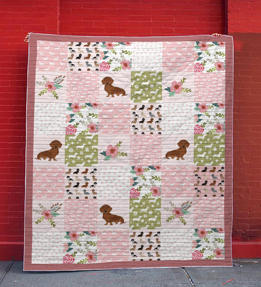 Shineful Flat Print Faux Quilt Blanket Floral Dachshund With Heart