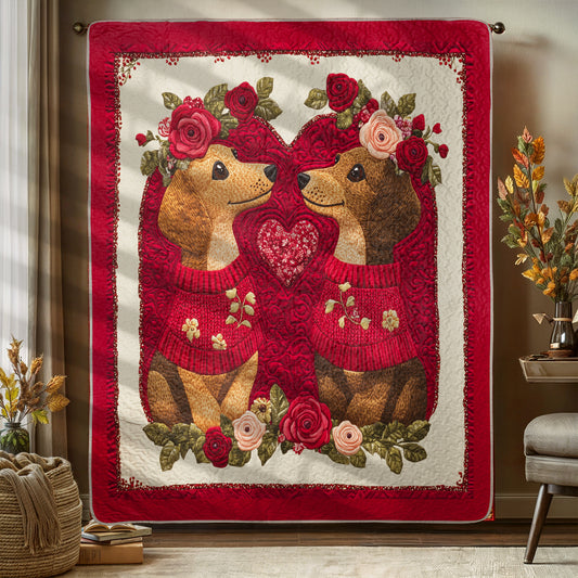 Shineful Flat Print Faux Quilt Blanket - Heart Floral Dachshund Couple