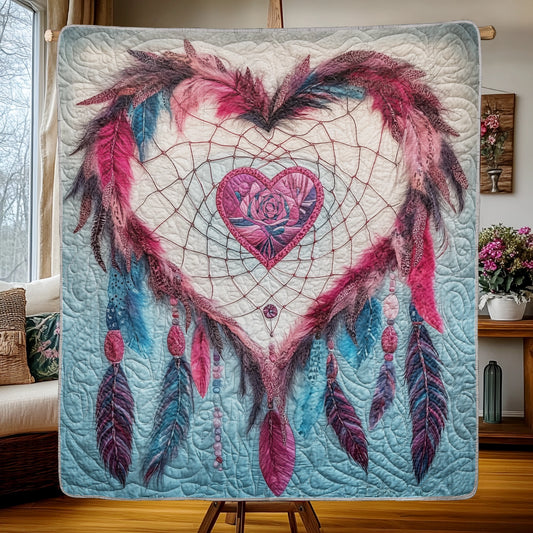 Shineful Flat Print Faux Quilt Blanket - Heartfelt Dreamcatcher of Feathers and Whimsy