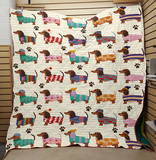 Shineful Flat Print Faux Quilt Blanket Cuteness Overload Dachshunds