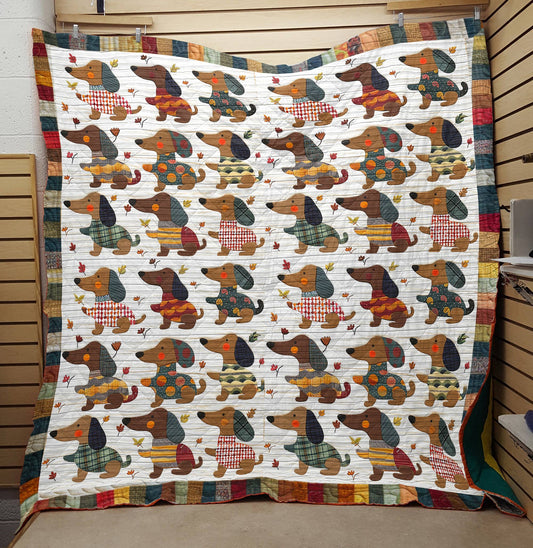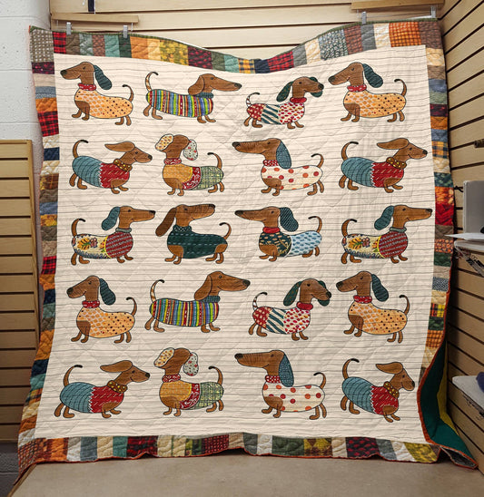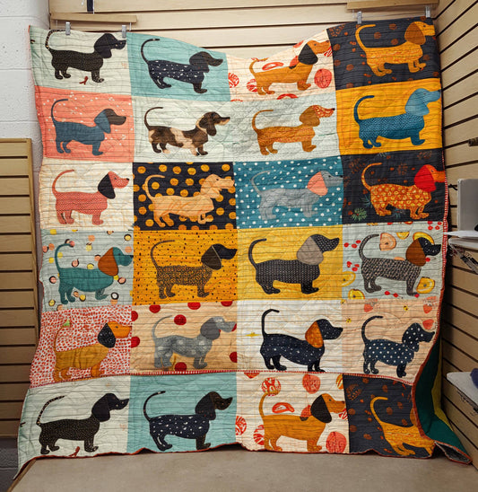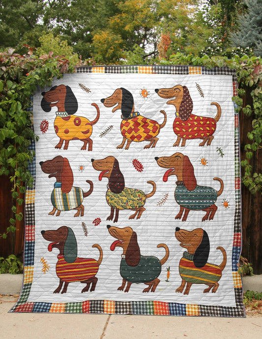 Shineful Flat Print Faux Quilt Blanket Energetic Dachshunds