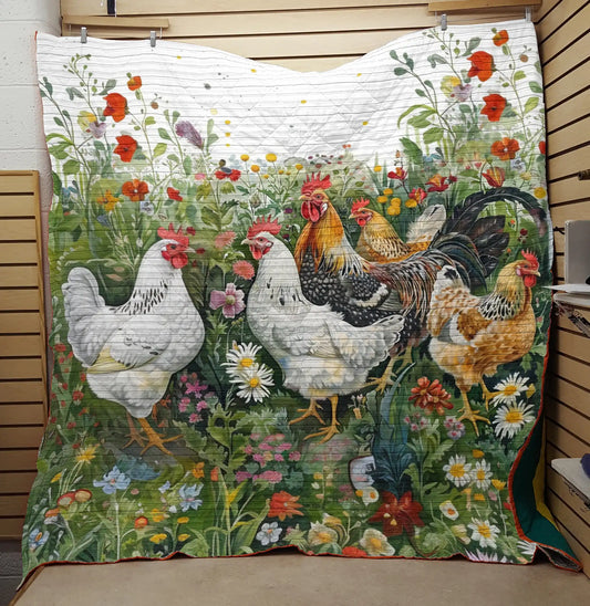Shineful Flat Print Faux Quilt Blanket Feathery Finery Chicken