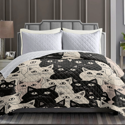 Shineful Flat Print Faux Quilt Blanket Cuddly Cat