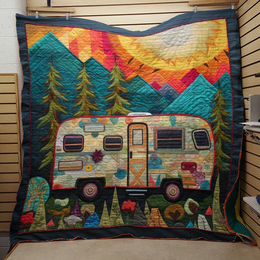 Shineful Flat Print Faux Quilt Blanket Happy Camper 02