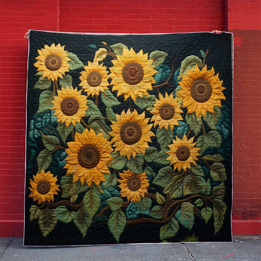 Shineful Flat Print Faux Quilt Blanket Sunflower 03