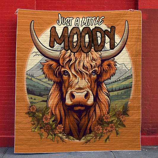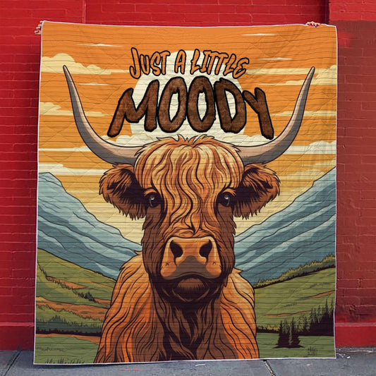 Shineful Flat Print Faux Quilt Blanket Highland Cow Just A Little Moody V2