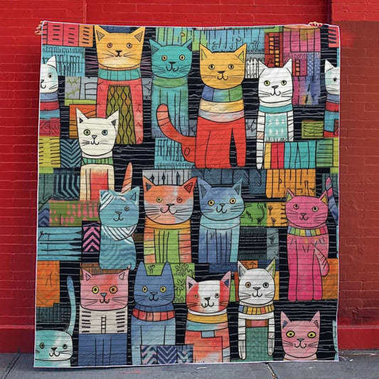 Shineful Flat Print Faux Quilt Blanket Crowd of Cute Cats