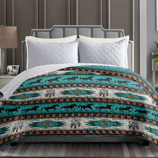 Shineful Flat Print Faux Quilt Blanket Traditional Horse motifs