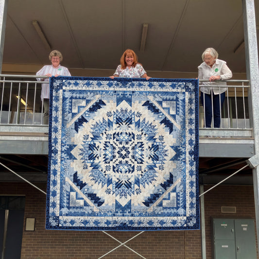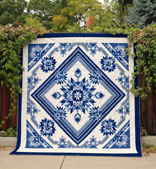Shineful Flat Print Faux Quilt Blanket Indigo Harmony