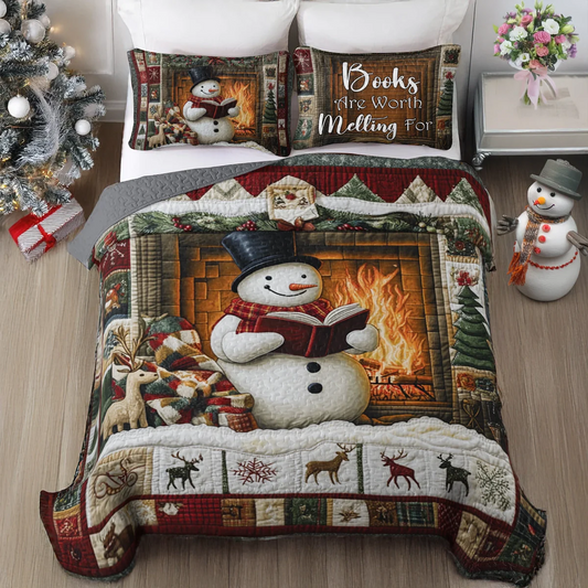 Shineful All Season Quilt 3-Piece Set Snowman Fireside Reading Delight