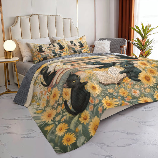 Shineful All Season Quilt 3-Piece Set - Reading Cat Nap