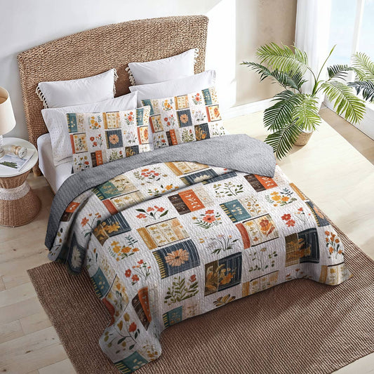 Shineful All Season Quilt 3-Piece Set Books Flowers Lovely