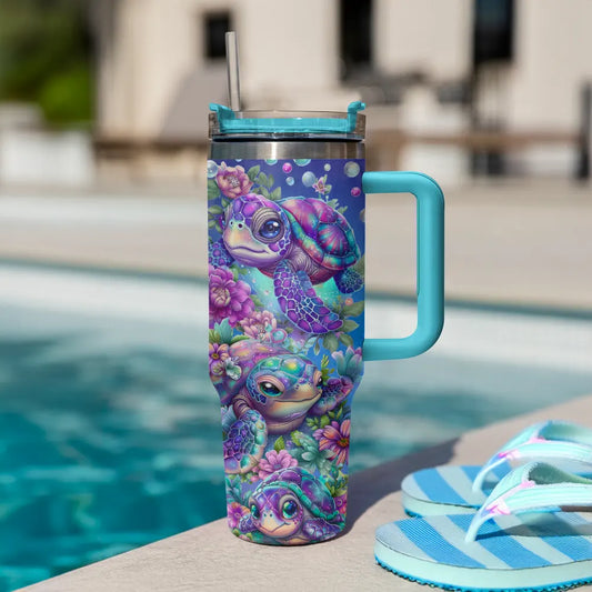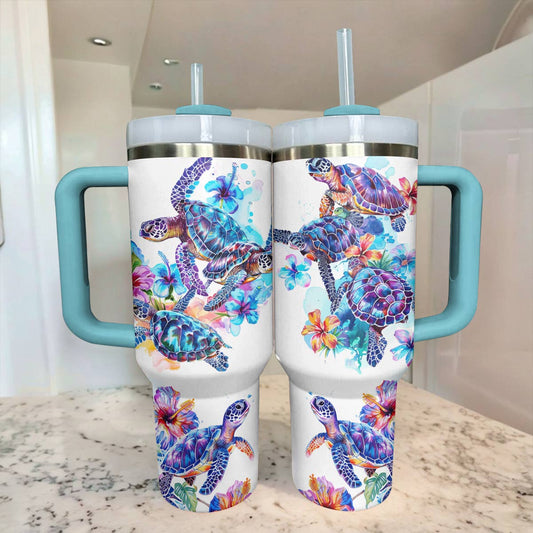 Shineful Tumbler Sea Turtles With Hibiscus Flowers