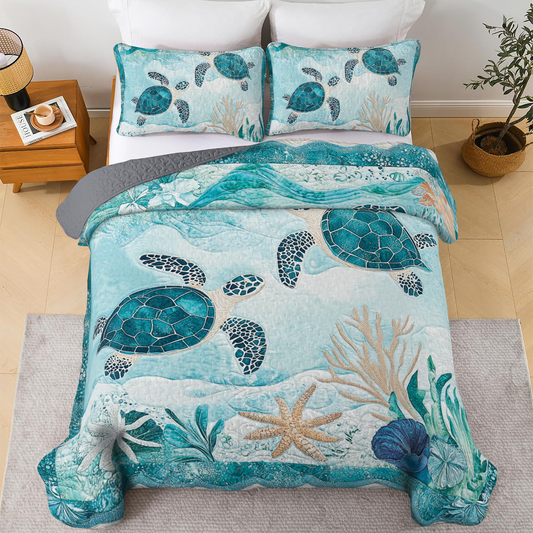 Shineful All Season Quilt 3-Piece Set - Sea Turtle Ocean Harmony