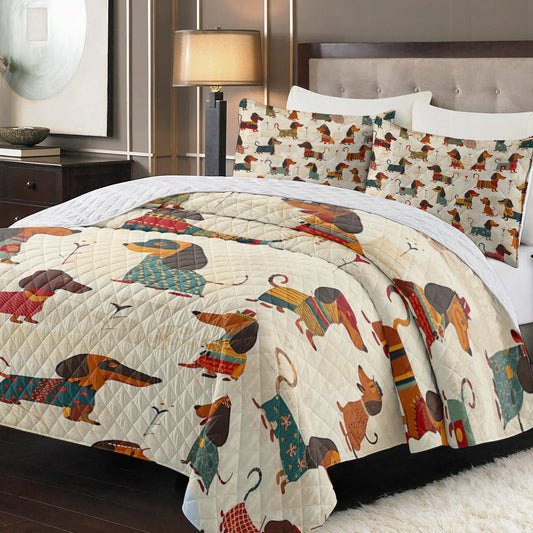 Shineful Dachshunds Quilt 3-Piece Set Charming Dachshunds