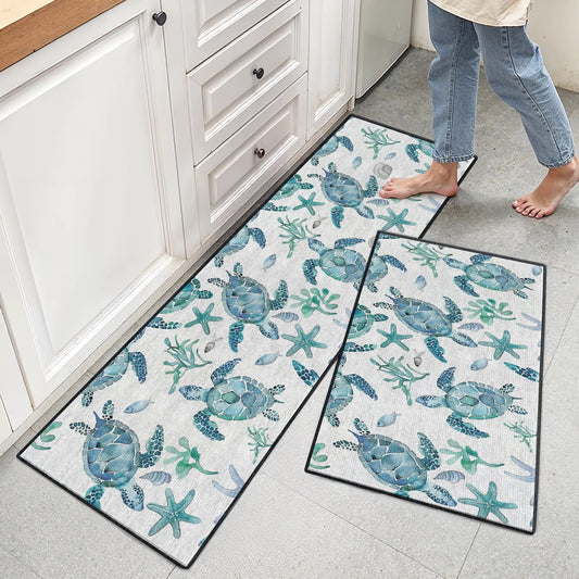 Shineful Ultra-Thin Non Skid Floor Mat, Kitchen Rugs Sea Turtle Blue Flow