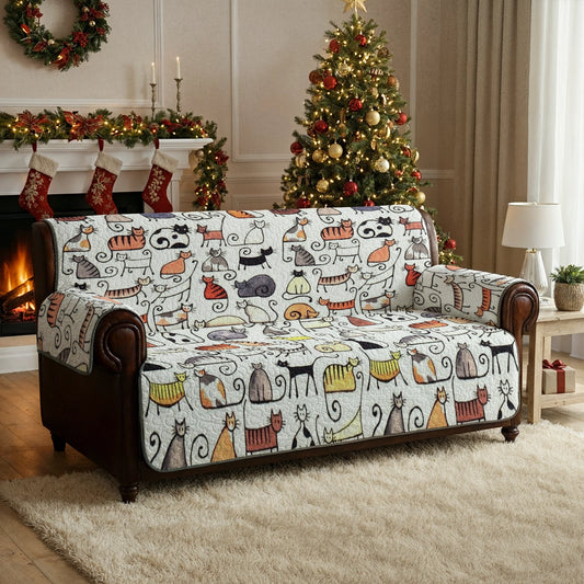 Shineful Sofa Cover Set Whimsical Christmas Cats