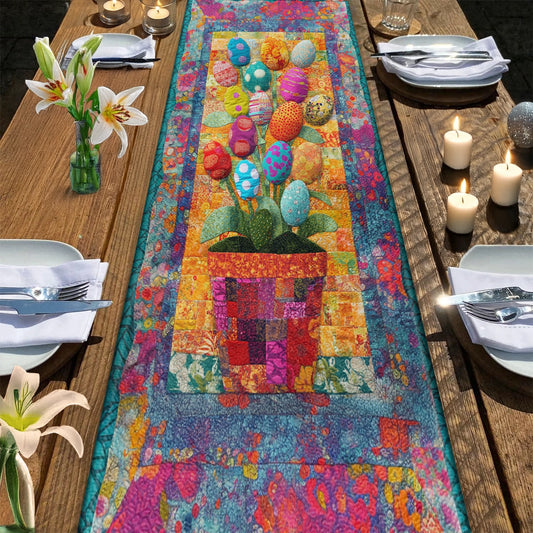 Shineful 2D Flat Print Quilted Table Runner Easter Eggs Blooming
