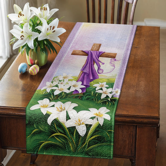 Shineful 2D Flat Print Quilted Table Runner He is Risen Lily