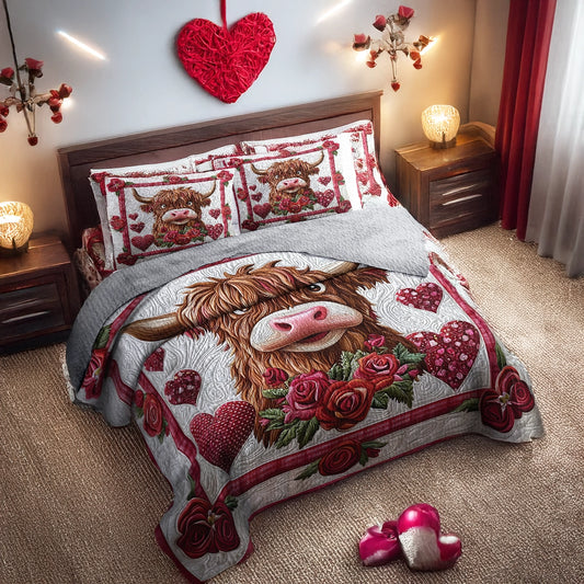 Shineful All Season Quilt 3-Piece Set Valentine’s Highland Cow