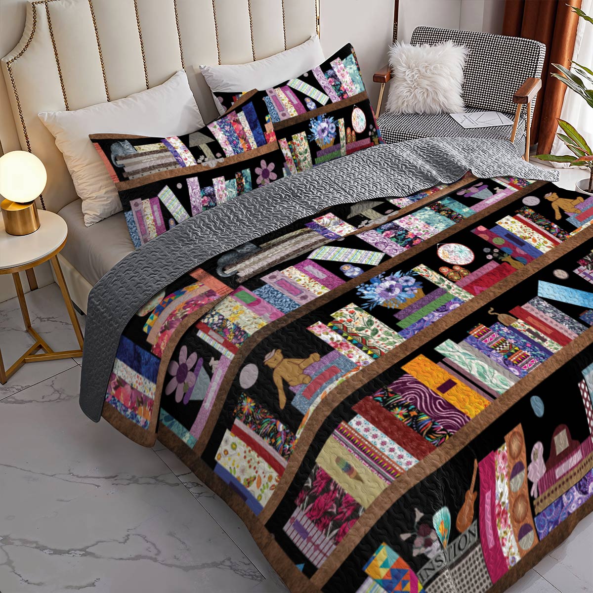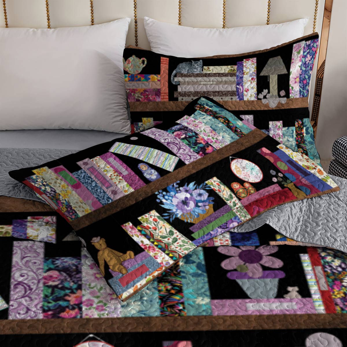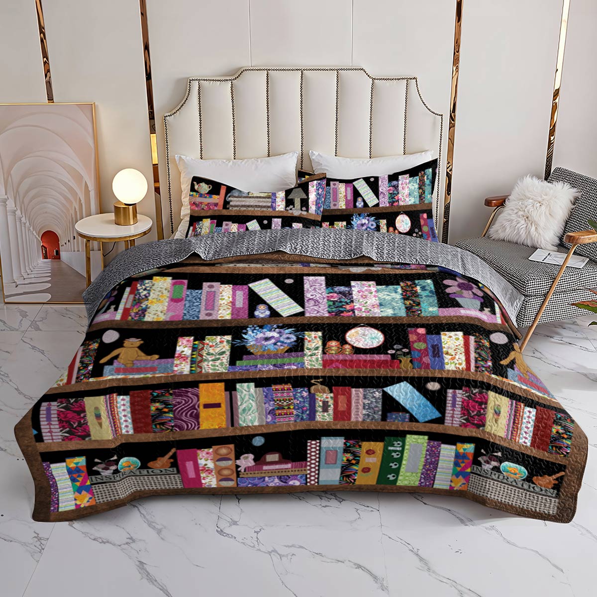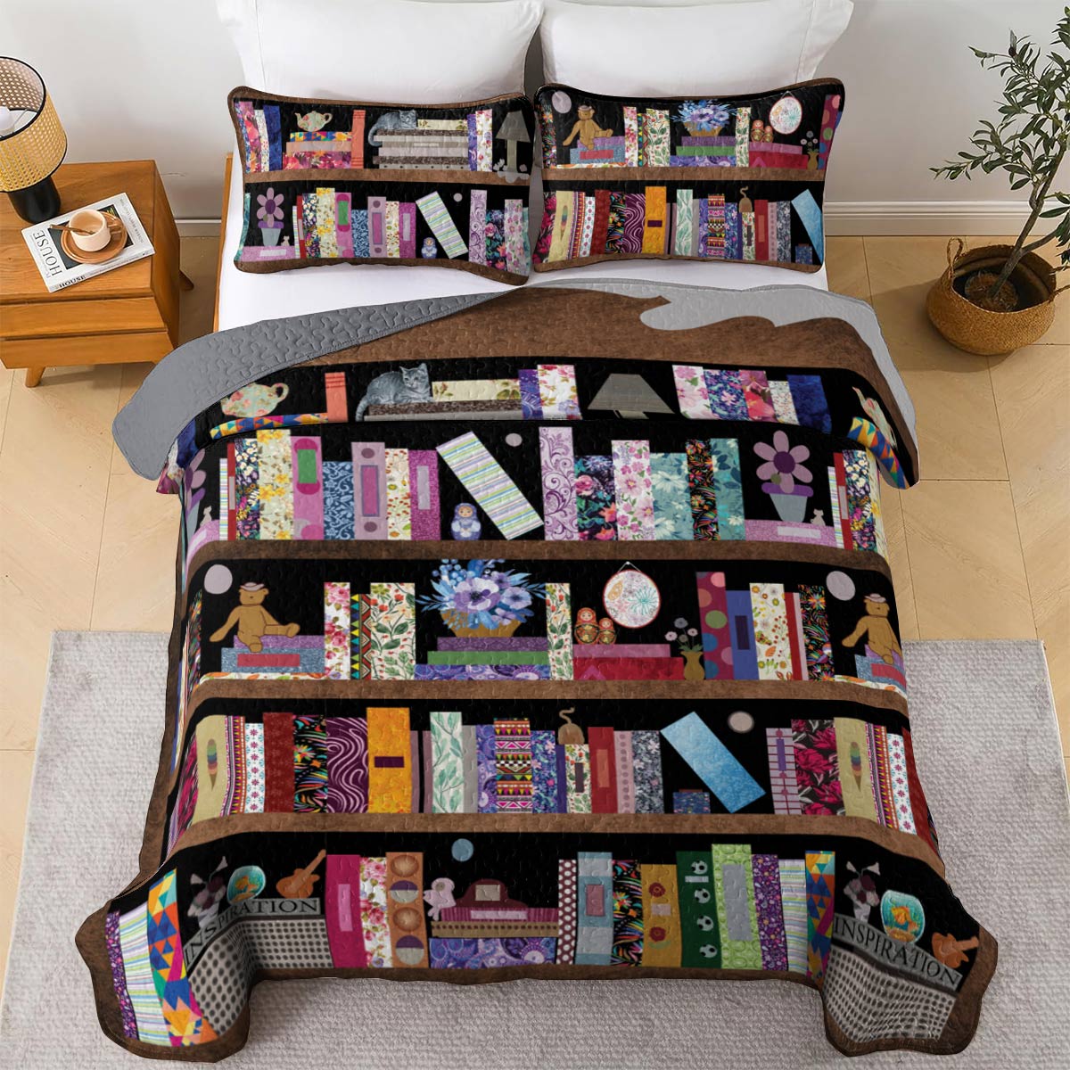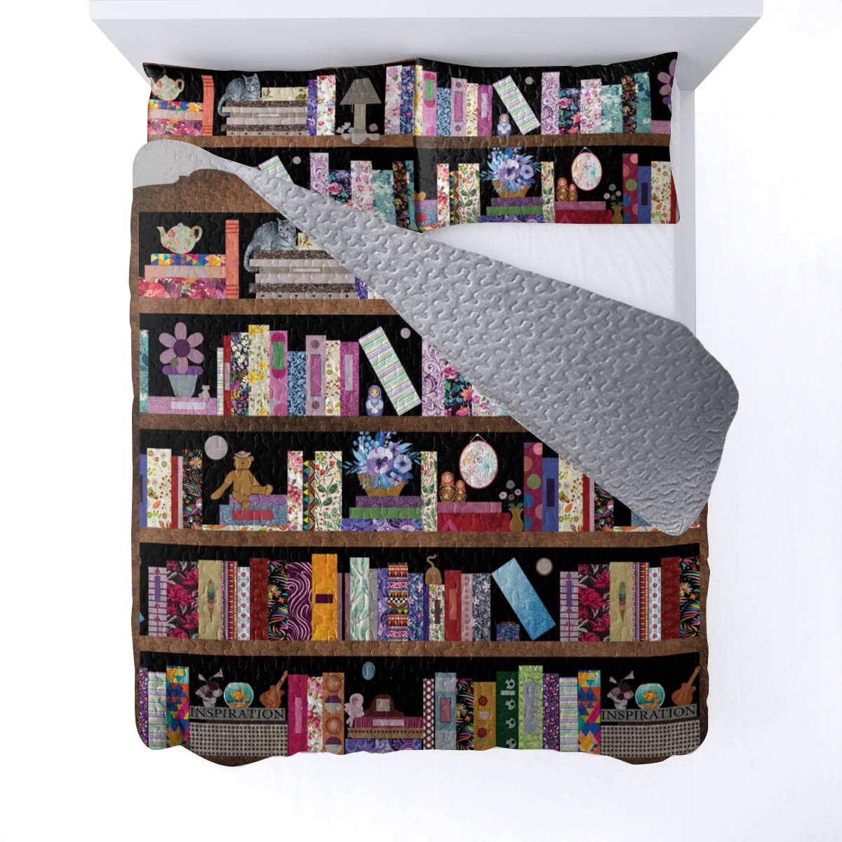 Book Lover Shineful All Season Quilt 3-Piece Set Vintage Bookshelf
